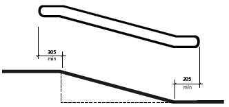 Перила должны быть разделы быть дольше, чем ступеней по лестнице или наклонной части по обе стороны рампы инвалидной коляске (рис. 1). Они должны быть не менее 305 мм внизу и 305 мм наверху. Вышеуказанные разделы должны быть горизонтальными.