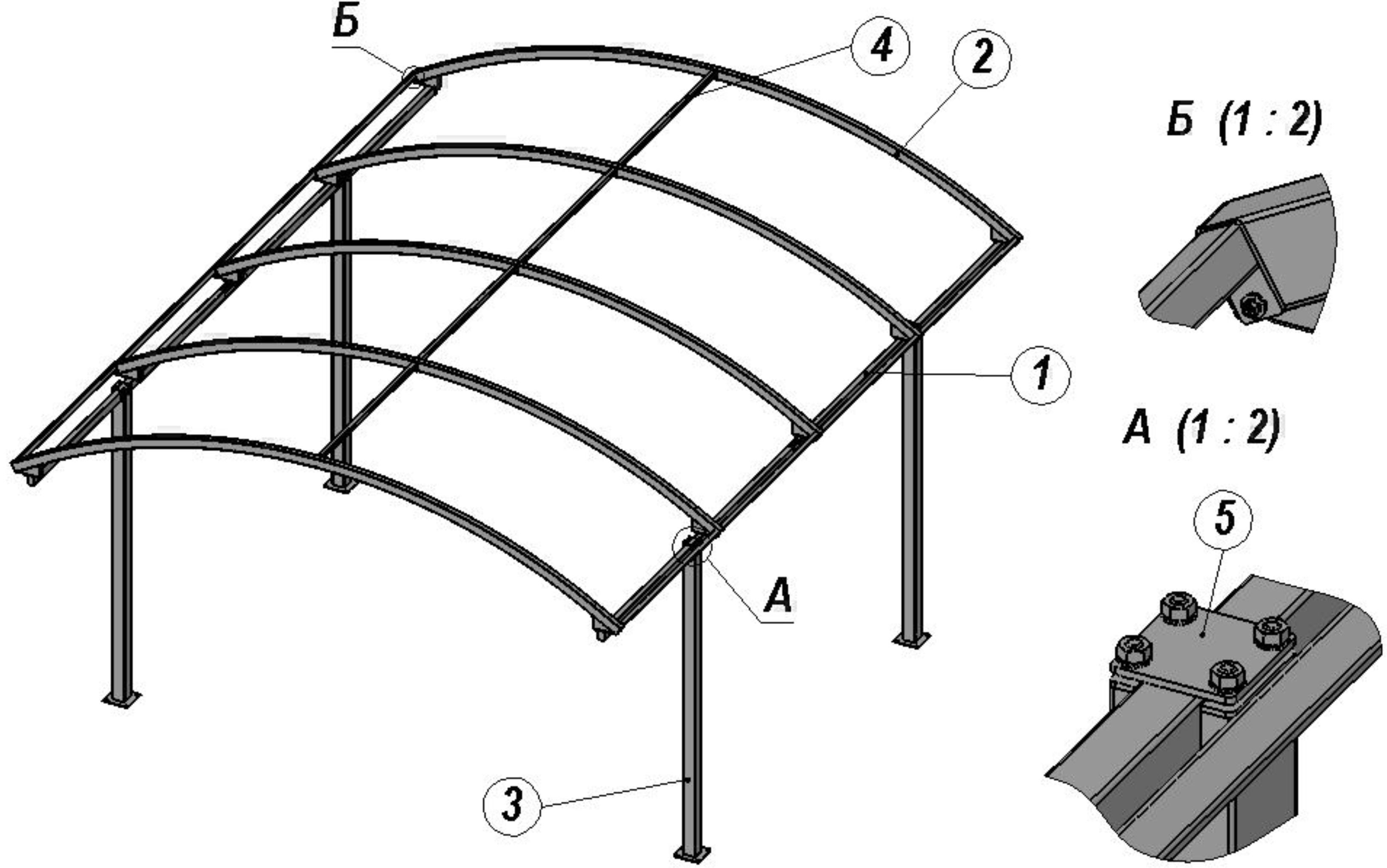 Дуга (поз.2) – силовой и формообразующий поперечный элемент навеса с отверстиями для крепления к балке;